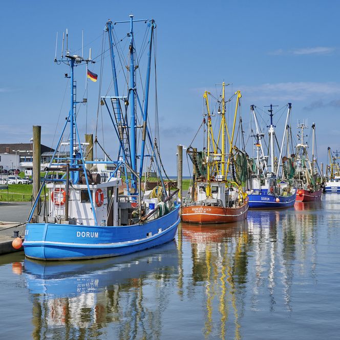 Spieka-Neufeld, Dorum-Neufeld oder Wremen: Die bunten Fischkutter in den kleinen Kutterhäfen haben einfach Charme. Mit etwas Glück kannst du den Fischer/-innen vor dem Ablegen der Schiffe zusehen. Oder du begrüßt die Krabbenkutter bei ihrer Rückkehr, etwa zwei Stunden vor Hochwasser - und kannst fangfrische Beute erwerben.